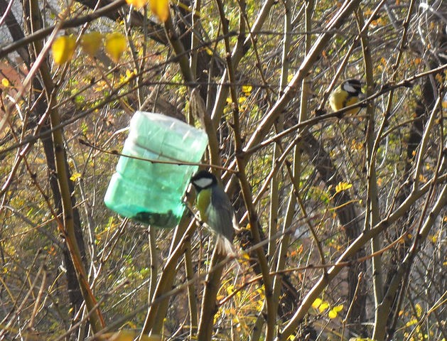 Неожиданно можно услышать курлыканье и увидеть в небе журавлиный клин: птицы летят на юг. А у нас начинают появляться синички, добрые люди привязывают на деревья для них кормушки.