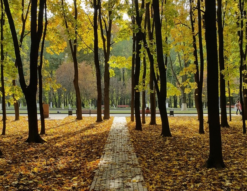 Понравилось в «Белоусовском парке». Он находится в центре города. Большинство кафе в самом парке были уже закрыты, остались только стойкие продавцы сладкой ваты и кукурузы. Можно было купить стаканчик чая или кофе и посидеть на скамейке на солнышке. А можно было ходить по аллеям и шуршать сухой и желтой листвой. Парк здорово благоустроили, расчистили и освежили. Правда, ближе к вечеру, прогулки в тени деревьев не приносят такого удовольствия, как днем. Осень дает о себе знать и температура воздуха без солнца быстро падает. К этому времени я нагулялся и слегка замерз. Поэтому прошел дальше по проспекту Ленина, искать кафе для обогрева.