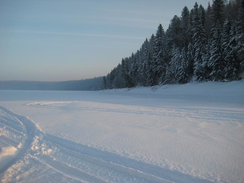 Знаменитое Павловское водохранилище так же не оставило себя без внимания. Ехали мы около часа, может быть полтора. Но то, что мы увидели, привело нас в легкую дрожь, прям мурашки пошли по всему телу. Настолько живописное и красивое место, словами это не передать: над водой слегка двигающийся туман, подталкиваемый ветром; небольшие возвышенности полностью усеянные деревьям, слега усыпанными снегом; хрустящий, сухой снег под ногами, и чистая, нетронутая природа. Отдельного внимания стоят эти самые возвышенности, достигают высотой, на мой взгляд около 15 - 20 метров, и просто абсолютно каждый метр заполнен деревьями и зеленью со снегом.