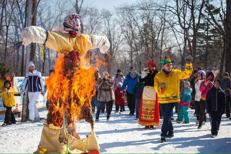 На начало марта почти каждый год, за редким исключением, выпадает один из моих любимых праздников - Масленица. Эта неделя во всей России празднуется очень пышно, Владивосток не исключение. После долгой и холодной зимы ее можно сравнить с глотком свежего воздуха, люди радуются, веселятся, с удовольствием принимают участие в конкурсах, палят чучело Зимы и ждут тепла. Ну и моя любимая часть праздника - блины:) Самые разнообразные, очень вкусные с множеством начинок, от самых бюджетных вариантов до традиционных русских блинов с красной и черной икрой, а ко всему этому разнообразию подается еще и горячий чай с настоящего русского самовара. Я за весь год не кушаю их столько, сколько во время Масленицы, для фигуры не полезно, но для души очень даже:)