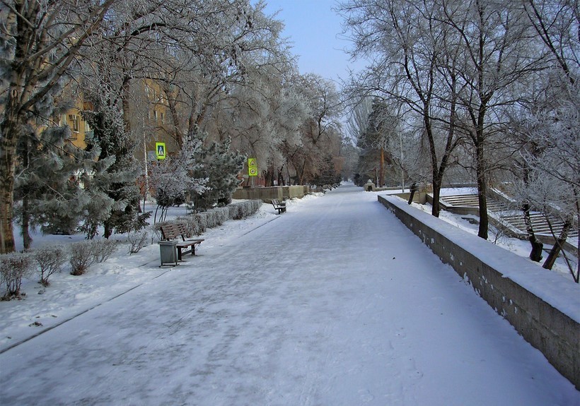 В отличие от нашего региона, который находится на 1500 километров севернее, довольно тепло. Мы приехали в пуховиках и зимних шапках. Подруга даже варежки прихватила. А там люди ходят в легких осенних куртках и без головных уборов. Интересный контраст. Температура днем, при солнце, доходила до +11 градусов. Ночью, правда, прохладно в районе -5 градусов. Но были и пасмурные дни – повезло без дождей. Здесь, в феврале, довольно таки ветрено, да и не только в феврале, скорее всего всю зиму погода неважнецкая. Ветерки то тут все время гуляют, из степи прилетают. А кругом степь шииирокая! Есть где ветру разгуляться. А если еще и влажность повышенная, то вообще бодрячок.