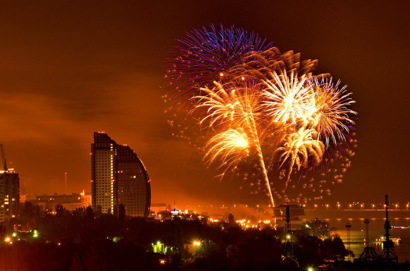 Говорят, для производства данной иллюминации задействовали примерно 40 орудий плюс наземные пиротехнические установки.