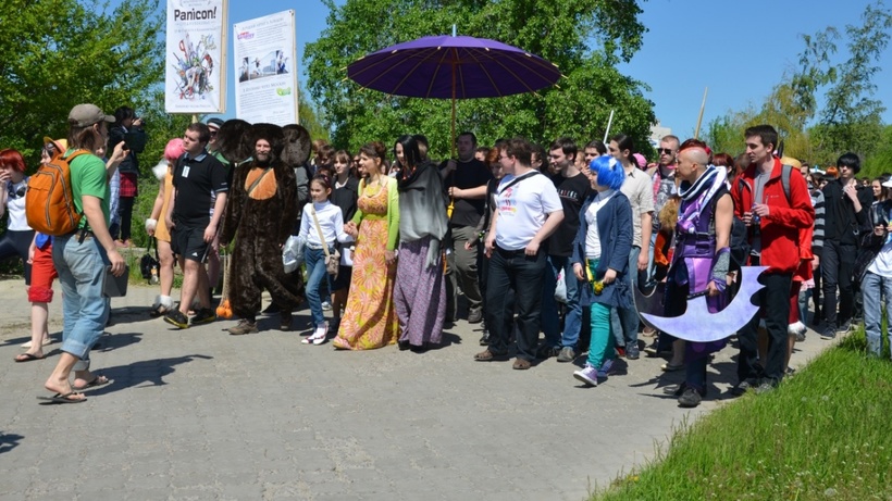 В последний день месяца состоялось торжественное открытие всероссийского фестиваля японского аниме. Этот очень красочный фестиваль ежегодно проходит в Воронеже в первые майские дни и, как я говорила выше, в этом году захватил последний день апреля. Настоящие анимешники проводят косплей-шоу и устраивают праздничное шествие от Адмиралтейской площади, в котором могут принять участие все желающие, кто сможет и захочет одеть на себя цветные волосы и такие же яркие костюмы.