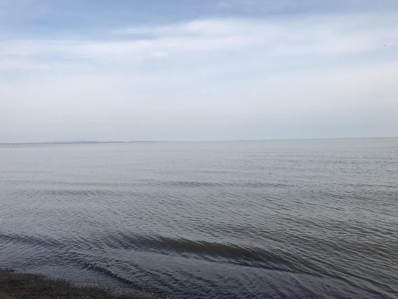 Город находится в окружении морей, поэтому здесь высокая влажность. Анивский залив от города отделяет всего лишь 20 километров! Но влажность особенно сильно повышается во время дождей. А на майские праздники было очень дождливо. Иногда выглядывало солнце, но основную часть моего отпуска было облачно. Температура воздуха находилась на отметке +9 днем и +4 ночью. Вода в Анивском заливе была холодной: +5 градусов. Я доехала до побережья, чтобы просто посмотреть на Охотское море.