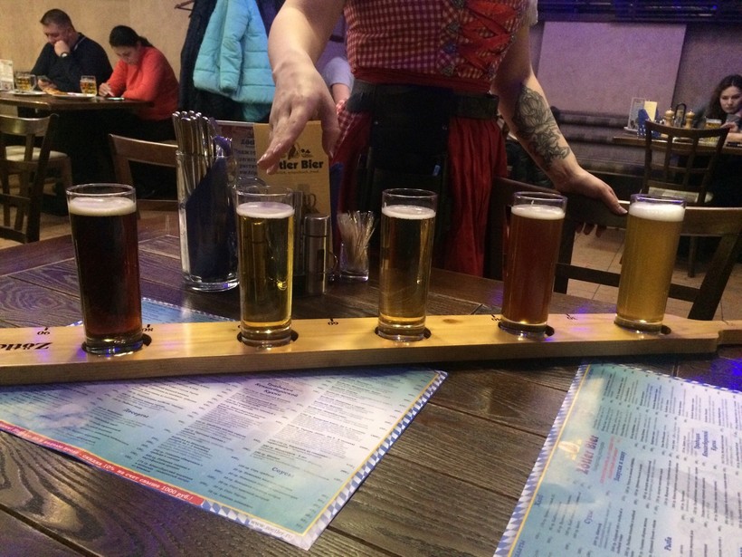 - можно заказать набор пива, чтобы перепробовать все сорта, это очень удобно.