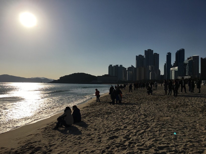 Количеству пусанцев на пляже я искренне удивилась. Люди сидели на бережку, глядели вдаль и о чем-то мило щебетали. Купаться, естественно, никому в голову не пришло, вода ледяная. Если есть желание поплавать, советую съездить на горячие источники Haeundae.