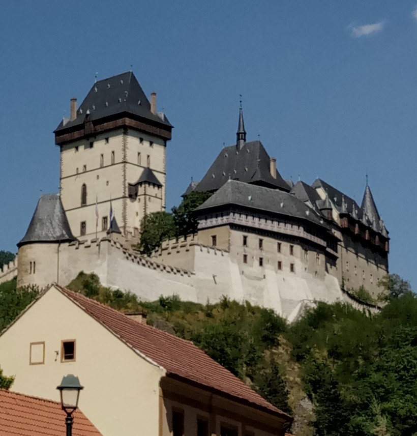 Замок состоит из не скольких уровней – чем выше расположен ярус, тем значимее данное место. Именно поэтому доминантой и самой высокой постройкой замка является Большая башня с часовней Святого Креста, где в средние века находилась сокровищница и хранились королевские регалии. Часовня также известна тем, что ее интерьеры, инкрустированные золотом и драгоценными камнями, украшают разнообразные портреты, выполненные мастером Теодориком – первым чешским художником эпохи Ренессанс, попробовавшем себя в светской живописи.