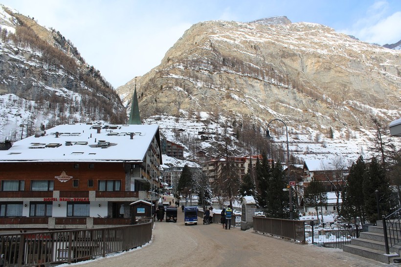 В начале мая ожидала увидеть цветочные луга, почувствовать аромат весны. Вокруг лежал снег, было весьма прохладно, +5. Не хватало солнца, практически все дни небо было подернуто серой пленкой. Кое-где встречались тюльпаны, но в целом, назвать это весной было нельзя. От пейзажей захватывало дух! В какой бы точке города вы ни находились, отовсюду виден Маттерхорн. Между прочим, это одна из самых фотографируемых гор в мире.
