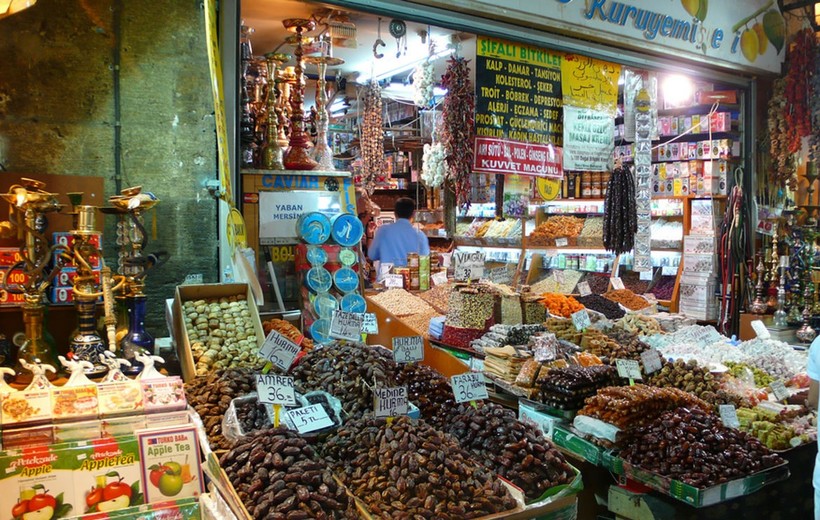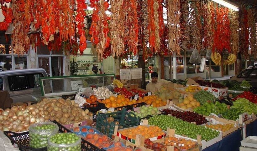 Июль - самое время для популярных турецких фруктов вроде яблок, слив, арбузов, дыни, черешни (еще встречается), персиков и абрикос. Клубники уже не попробуете, груш и винограда - ещё не попробуете. Из овощей - стандартный набор: помидоры, огурцы, баклажаны, кабачки. Продаются повсеместно - на рынках, в магазинах, даже около отелей торгуют. Остальное как обычно - сухофрукты, орехи, специи, турецкий чай. Не факт, что на базаре будет дешевле, но попытаться стоит.