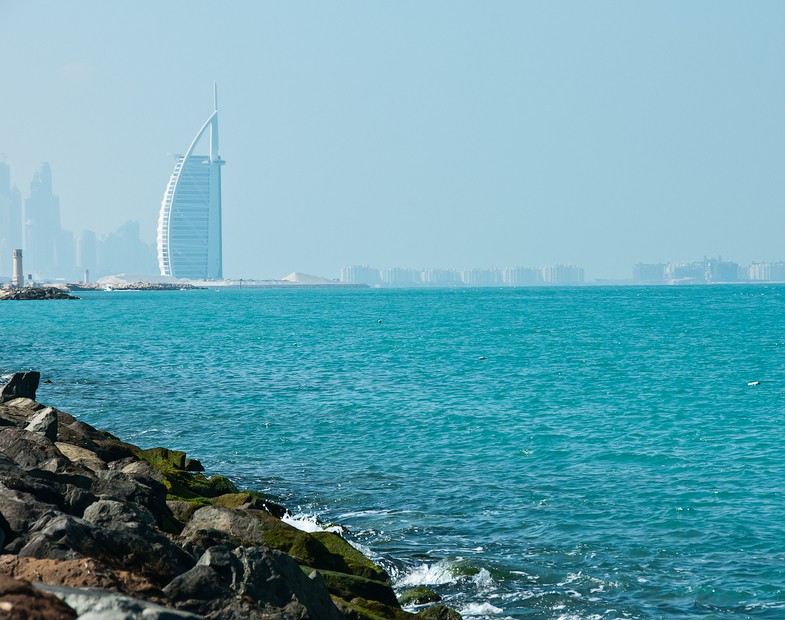 В феврале уже достаточно тепло, но настоящая жара еще не наступила, она начнется где-то в апреле-мае. А в феврале на улицах Дубая одинаково комфортно как в джинсах, так и в шортах (правда их здесь особо не поносишь). Дневная температура стабильно держится в пределах 23 - 24 градусов тепла. Ночью ощутимо прохладнее, температура может опуститься и до плюс 19 градусов. А вот утром всегда достаточно тепло - воздух прогревается до 22 градусов. Море довольно-таки прохладное, в феврале вода прогревается максимум до 22 градусов. Но купаться можно. Сначала вода кажется просто ледяной, но к ней довольно быстро привыкаешь. В жаркий день так вообще чудесно. Дожди в феврале практически не идут. Ну может если только один - два раза в месяц, но и они будут кратковременные, буквально на полчаса вечером. У нас весь отдых было голубое небо и светило солнце. Ветер здесь бывает практически всегда, и он достаточно сильный. И вот из-за ветра могут возникнуть настоящие проблемы: во первых, не всегда и на улицу получается выйти, когда ветер с ног валит, а после вот таких-вот ветров, уже ближе к концу месяца начинаются песчаные бури - а то вообще мрак - песок во все щели лезет, даже в квартиры на верхних этажах. Влажность воздуха в Дубае небольшая, всего 60 процентов, поэтому воздух здесь достаточно сухой. А еще в феврале в Дубае очень быстро темнеет, продолжительность светового дня не превышает 12 часов. Мы уходили с пляжа в районе 7 вечера просто потому, что на улице уже было достаточно темно.