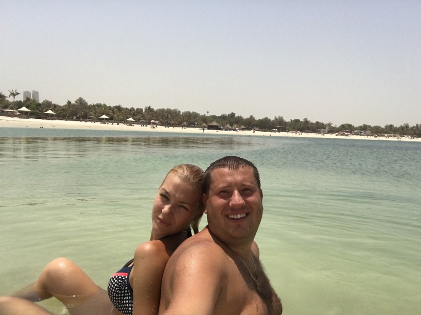 Персидский залив прогрет до +35 градусов, плавать приятно, хотя в такой зной желательно бы водичку попрохладнее.