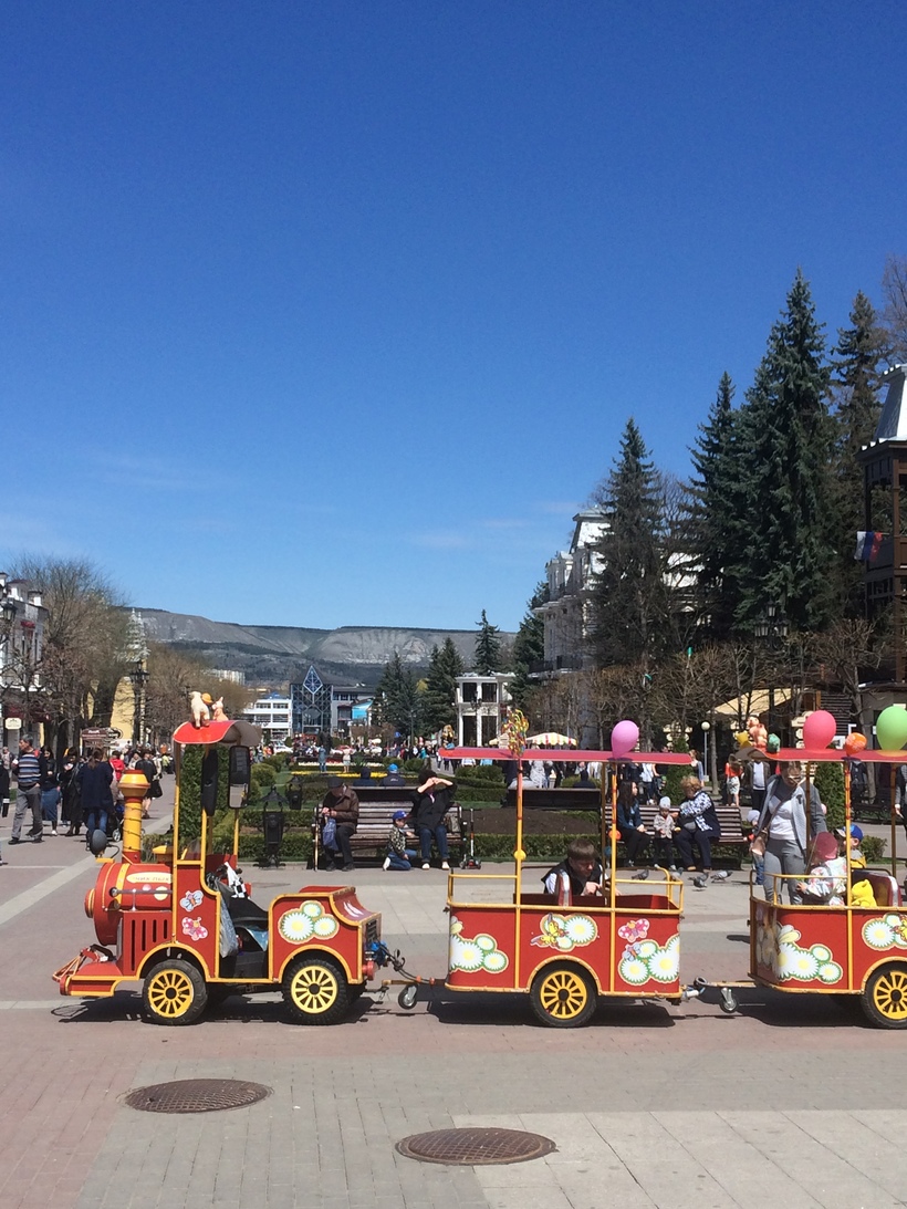 В самом городе в районе Курортного бульвара есть развлечения для дошкольников: надувные батуты, карусели, паровозик бегает по бульвару.