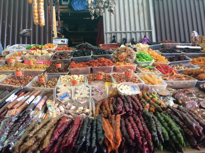 Угостите детей вкуснейшими сладостями-чурчхелой или пастилой. Спросите у продавцов и они подберут под вкус ребенка. Моя любит покислее :)