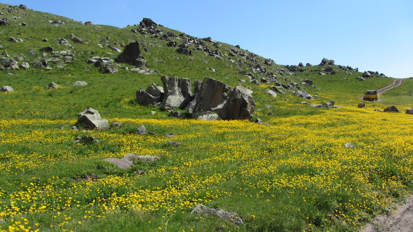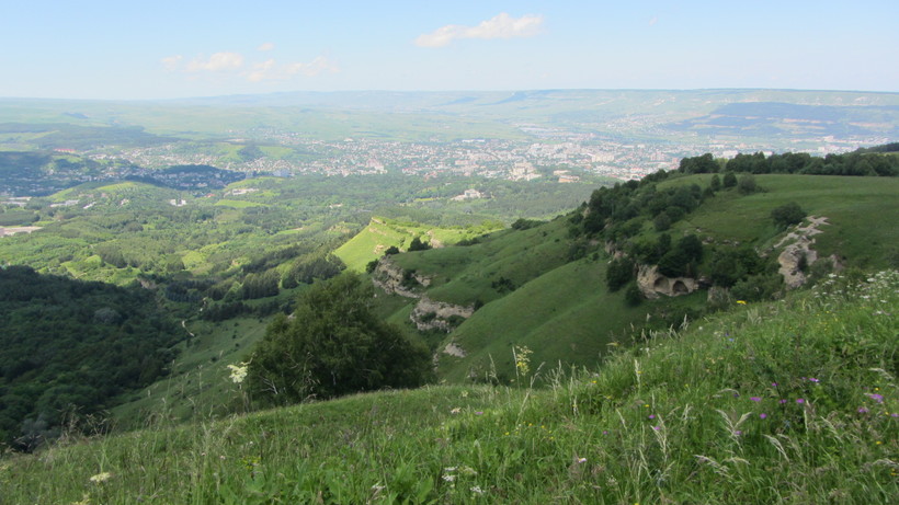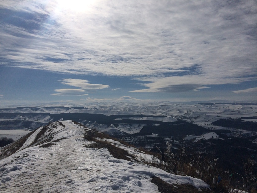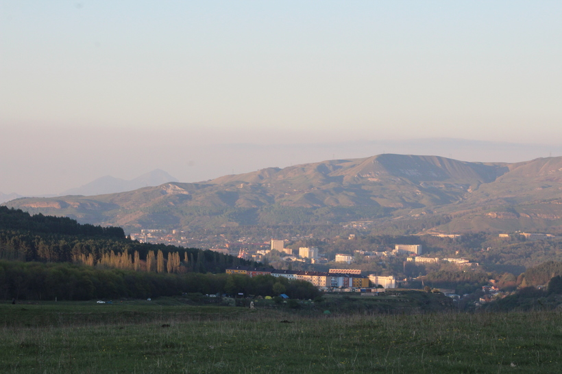 Впереди Боргустанский хребет. Если Вы читали мою статью Кисловодск за 3 дня, то Вы с ним уже знакомы. Вспомнили, что красивого там было сделано матушкой-природой? Правильно, Гора-Кольцо.