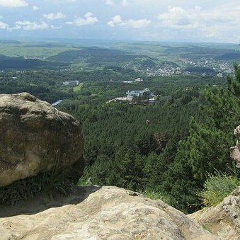 Горы наши меловые или песчаниковые, порода мягкая и путем выветривания природа создала красоту в виде террас и гротов, которые раскинулись по всем хребтам. Есть еще красные песчанники, их Вы сможете рассмотреть в парке, называются "Красные скалы и красные грибы"