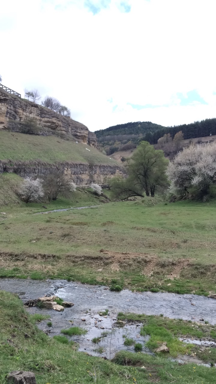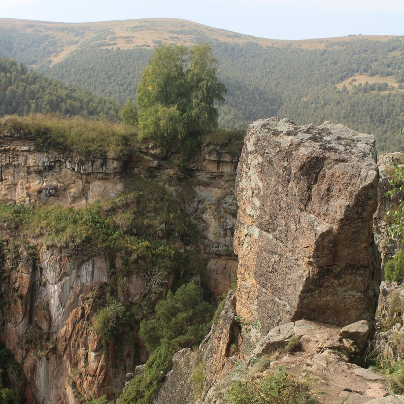 На Ольховке мы встречаемся со скалой, входящей в Лермонтовские места КавМинВод- Лермонтовская скала. Вы же у меня такие же любознательные как и я? Тогда не стойте наверху, как все туристы. Слева есть тропинка, она спускается к Ольховке, там по камня или через воду прямо к скале выходите. Говорят гроты вокруг Лермонтовской скалы резонируют на определенные октавы голоса. Если Ваш голос позволяет-попробуйте и запишите, поделитесь потом.
