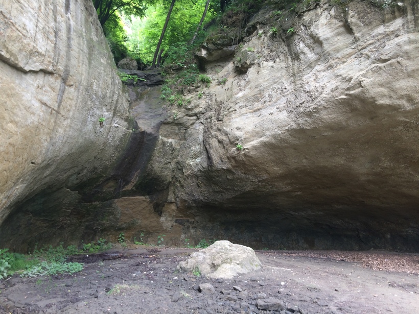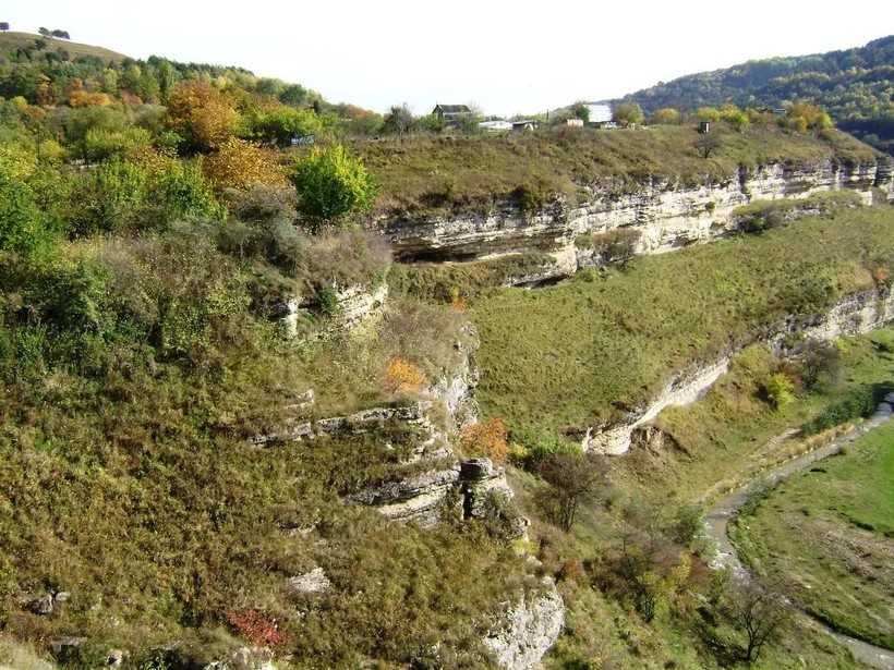 Чуть дальше Лермонтовская скала, удивительное по красоте место. Посмотрите сверху, по плато можно пройти над ущельем. От дороги есть тропинка, это спуск к Ольховке, там по камням можно перейти к самой скале. Только будьте аккуратны, спуск довольно крутой. По скалам ущелья разбросаны гроты, говорят, что они реагируют на некоторые октавы голоса вибрациями. Лермонтовская скала — интересный археологический район. Начиная с VIII века до нашей эры, на протяжении двух тысяч лет она являлась своеобразным центром жизни древних племен. На вершине скалы археологами обнаружена коллекция керамики VIII-VII веков до н. э., на восточном склоне скалы, у ее подножья обнаружено несколько дольменов. Ученые установили, что здесь было поселение сначала бронзового века, а потом позднее — аланское. По ряду признаков Лермонтовская скала была ритуальным местом. Поэтому ее окрестности длительное время были густо заселены людьми.