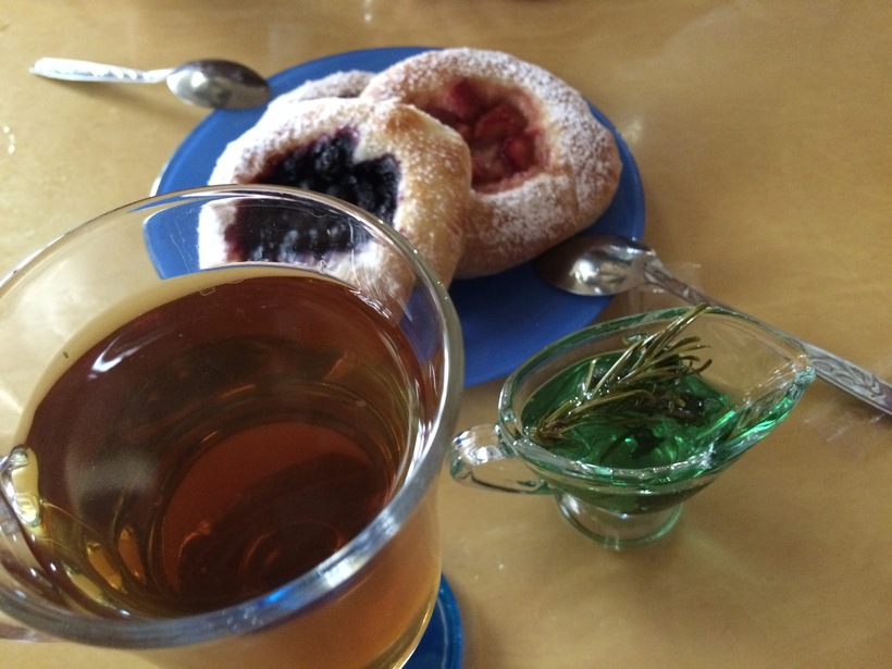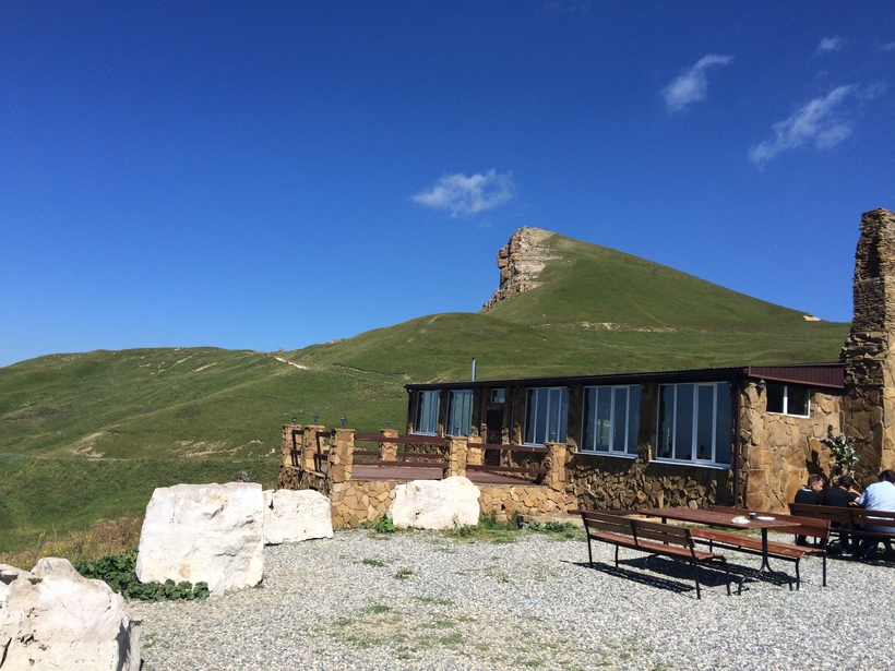 Один из самых запоминающихся завтраков на перевале Гум-баши, на высоте 2145 м с видом на Эльбрус и Большой Кавказский хребет. Изумительные хычины с сыром или мясом, домашний сыр, горный чай и обязательно стаканчик айрана.