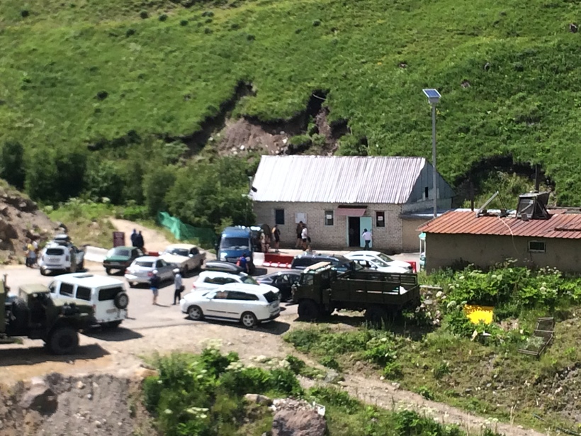 У Вас есть время погулять, а машина пока остынет, впереди перевалы. Запах жженых колодок около Долины Нарзанов, это стандартная ситуация- еще раз настоятельно прошу не ехать сюда самим без опыта вождения в горах, пожалейте машину и свои нервы.