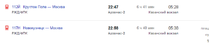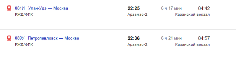 На поездах от Арзамаса-2 до Москвы действуют такие расценки: