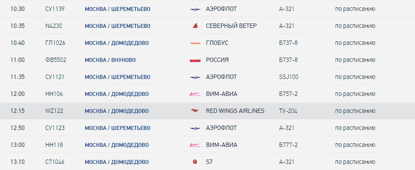 Больше всего мне понравилось добираться по этому маршруту на самолете из Сочи, на перелет ушло всего 2 с половиной часа. Рейсов до Москвы отсюда бывает много, они есть в любое время суток. Чтобы вы представили с какой частотой летают самолеты по интересующему нас маршруту, привожу лишь небольшой отрывок расписания. До аэропорта доехали из Туапсе на электричке за почти что 3 часа.
