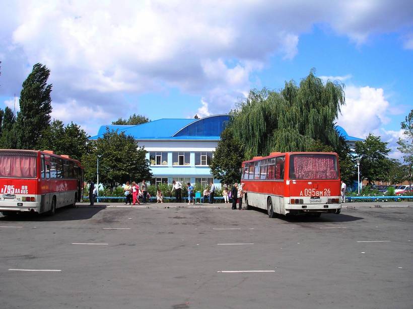Прямых рейсов нет, но можно добраться через город Баксан (Кабардино-Балкария). На данный момент есть четыре ежедневных рейса до этого города. Автобусы отправляются с автовокзала, который расположен на улице Промышленная, 4. Время: