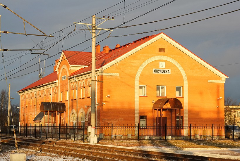 Железнодорожный вокзал в Окуловке находится недалеко от автостанции, также на улице Ленина, через 200 метров. Можно дойти за 2 минуты. Так как станция Окуловка находится на популярном направлении «Санкт-Петербург – Москва», то по этому маршруту в разные дни ходит около 20 поездов.