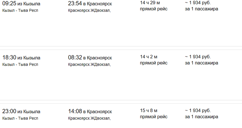 Поезда из Кызыла в Красноярск не ходят, а ехать с пересадками очень глупо и невероятно долго.я нашел ошибку!