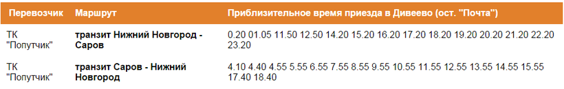 Когда я путешествую в Дивеево не на автомобиле, а на общественном транспорте, стараюсь добираться в Нижний Новгород на автобусе. Отсюда ходит единственный прямой рейс в нужном направлении, бывает он ежедневно в 15:50. Можно еще уехать на транзитных автобусах из Вознесенского, но отправляются они каждый день рано утром в 05:00 и в 09:00. Имеется еще возможность добраться в Нижний Новгород от почты, где останавливаются маршрутки из Сарова. Первая идет уже в 04:10, а последняя – в 18:40, интервал между ними около 1 часа. На автобусе из Дивеева до Нижнего Новгорода вы будете ехать примерно 3,5 часов, а прибывают они на автовокзал Щербинки.