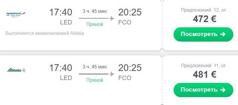 Ниже приведена информация о том, сколько часов вам потребуется, чтобы добраться от Санкт-Петербурга до Рима, а также приведена примерная стоимость проезда (средняя цена билета) на том или ином виде транспорта.