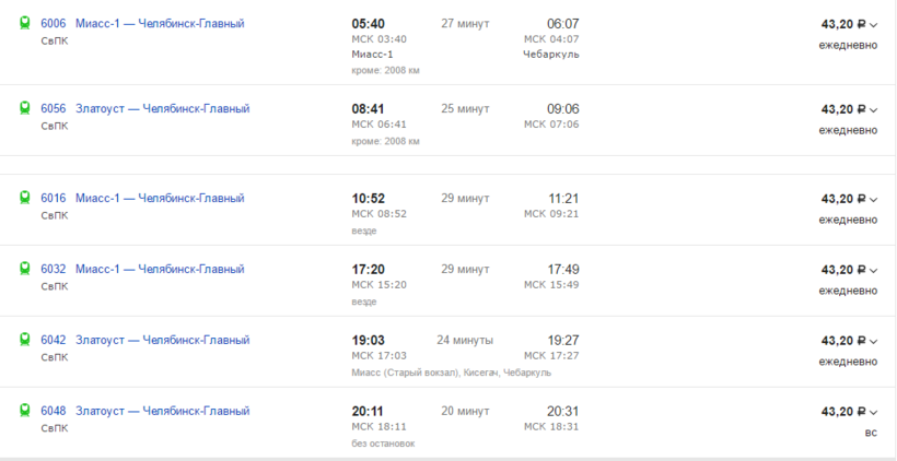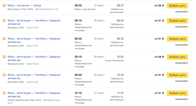 Ниже приведена информация о том, сколько часов вам потребуется, чтобы добраться от Миасса до Чебаркуля, а также приведена примерная стоимость проезда (средняя цена билета) на том или ином виде транспорта.