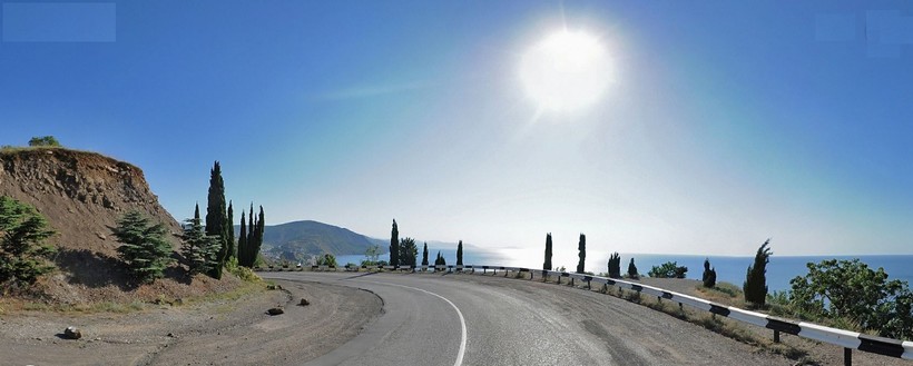 Ездить по крымским дорогам нелегко, так как они посредственного качества, а в курортный сезон машин очень много. Поэтому мы выехали ранним утром, чтобы ехать не спеша и рассматривать прекрасные виды из окна. А из главных минусов отмечу, что она проходит через все населенные пункты на побережье, поэтому нужно быть предельно внимательным. Свыше 60 км/час редко когда удавалось разогнаться, но в целом поездка очень впечатляющая. Так же мы останавливались на перекус в одним из сотен кафе, которые Вы встретите в поселках по пути и везде кухня восхитительная.