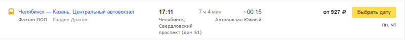 Стоимость проезда и время в пути