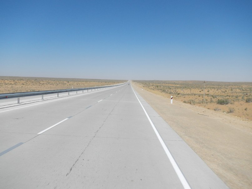 Итак, из Ташкента мы выбрались после обеда, утром были ещё кое-какие дела. От Ташкента до Самарканда (около 300 км) проходит магистраль, полотно там отремонтировано, свободно ехали 100 км/ч. А вот от Самарканда до Навои трасса, конечно, оставляет желать лучшего, асфальт разбит, много ям. Дальше путь наш был таким: Бухара - Беруни - Нукус, нужно учесть, что между этими городами приличное расстояние и только в них можно заправиться, купить еду или напитки, по дороге нет ничего, даже в туалет (извиняюсь) не сходить, кругом степь. В Нукусе решили немного вздремнуть, дорога изрядно вымотала, нашли на окраине города гостиницу, там и заночевали. Утром снова в путь, на повестке дня стоял Казахстан, от Никуса до Бейнеу (Казахстан) порядка 500 км, так же нигде не души, едешь в ауле, благо хоть асфальт есть, хотя и тот весь разбит, 50-60 км/ч - не более! Эти несчастные 500 км преодолели за 8,5 часов, на таможне пограничники потрепали немного нервы, но все же пропустили. В Бейнеу остановились в кафе на трапезу, вкусно и недорого подкрепились:).