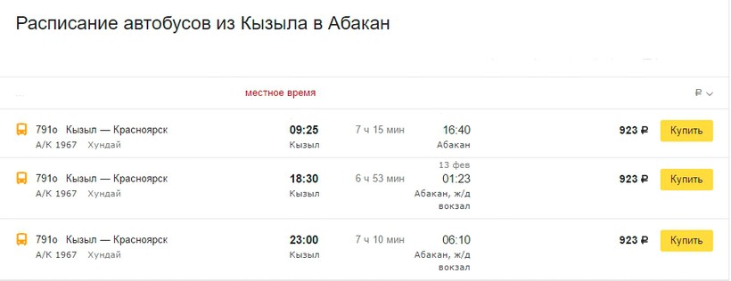 Так как вариантов очень много, лучше подбирать их на поисковиках в Интернете, например, здесь. Билеты на автобус можно купить в кассе автовокзала Кызыла по адресу ул. Дружбы, 55.
