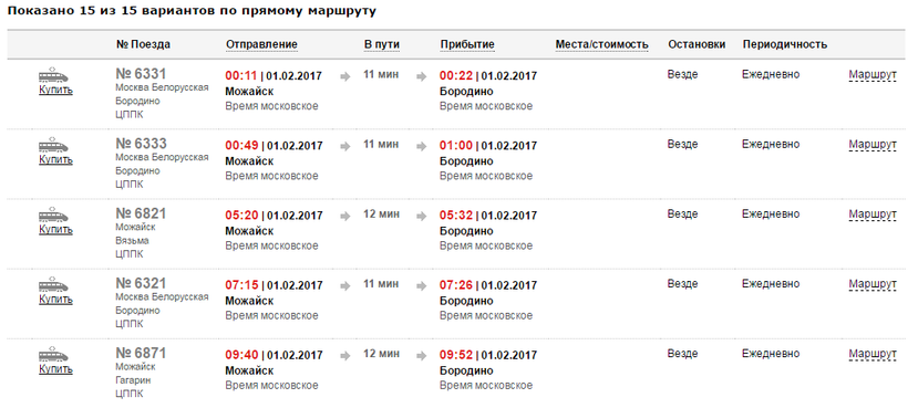 Ж/Д билеты Можайск – Бородино