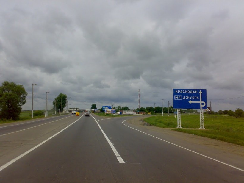 Дальше до столицы Кубани мчусь по трассе М4. Дорога будет четырехполосная. Несмотря на то, что это федеральная платная трасса, хорошей ее назвать никак нельзя. Могу сказать, что уже на данный момент во многих местах дорожное полотно требует ремонта. Особенно за 50 километров до Краснодара.