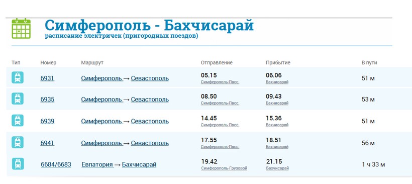 Билет на электричку из Симферополя в Бахчисарай стоит 43 рубля. Это полный билет для взрослого. Есть еще ряд льготных категорий пассажиров, которые могут приобрести билеты за половину стоимости. Проезд на маршрутке из Бахчисарая в Песчаное обойдется в 20 рублей.