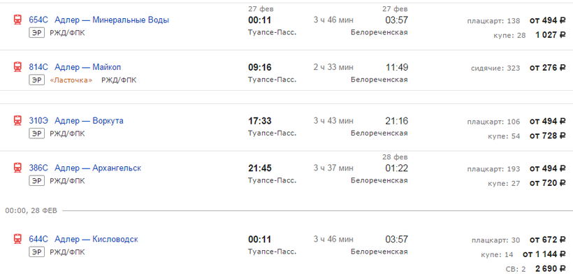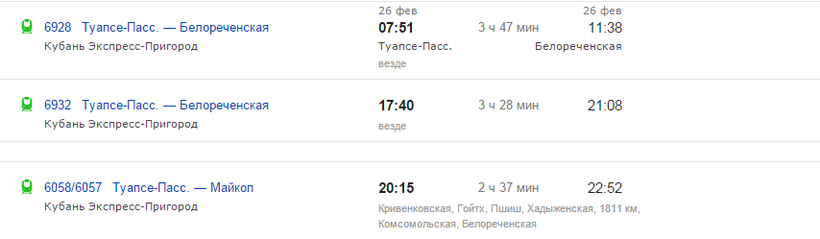 С мая по октябрь возможно уехать в этом направлении практически круглосуточно каждый час, поскольку добавляются новые сезонные рейсы. На этих поездах до Белореченска доберетесь за 3,5-4 часа.