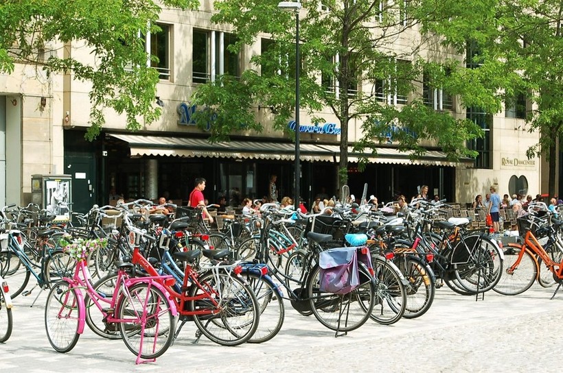 Копенгаген, наверное, самый велосипедный город в мире, по городу постоянно передвигаться тысячи велосипедов, различных типов, форм, размеров, на велосипедах передвигаться все от мала до велика, начиная от младенцев в специальных колясках, или креслах при крепленых к велосипедам родителей, заканчивая пенсионерами на прогулочных великах.