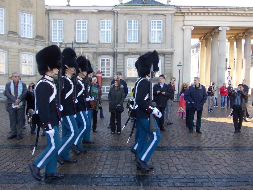 Самый известный дворец для жителей Копенгагена это Амалиенборг. Ведь это официальная, действующая резиденция королевской семьи. Дворец состоит из четырех зданий стоящих вокруг площади, в центре которой стоит памятник Фредерику пятому.