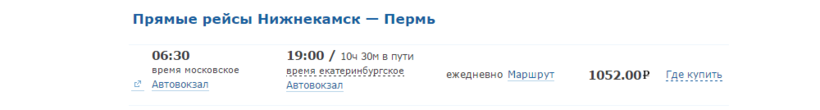 Если хотите перемещаться между городами на автобусе, то придется встать пораньше (на маршруте он один). Или же устроить цепочку из пересадок Нижнекамск - Набережные Челны - Ижевск - Пермь (в разы дороже).