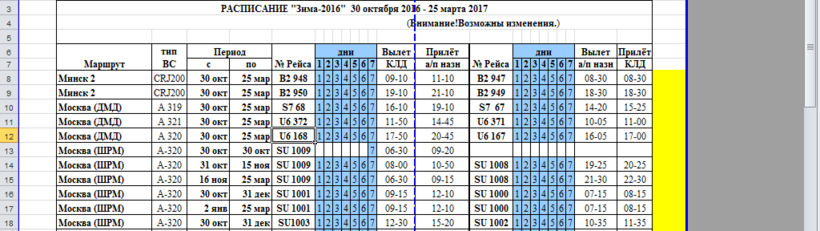Прошу вас заметить, что это сезонное (зимнее) расписание с 30 октября по 25 марта. Как только расписание сменится на летнее, то вы сможете увидеть его на сайте аэропорта и даже скачать себе на компьютер. Перелет занимает 2 часа, и вы будете в аэропорту Минска. Далее вы уже сами можете решить, как вам добираться до Речицы. Можно поехать поездом, как я уже описывала выше, а можно автобусом. Центральный автовокзал Минска находится по адресу: ул. Бобруйская, 6.