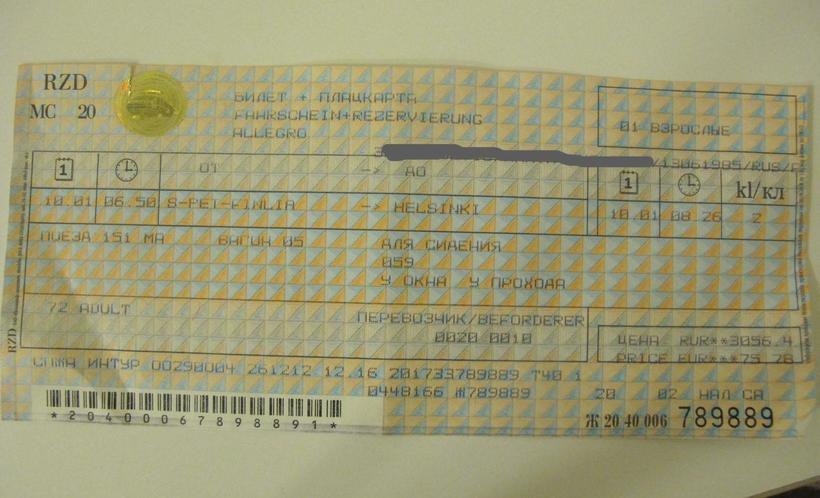 Если вам интересно, то ниже можете посмотреть, как выглядит билет на поезд.