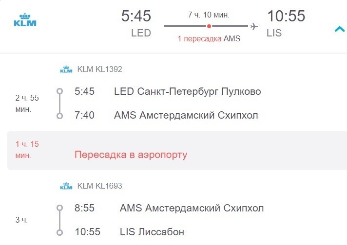 Также можно полететь через Амстердам, так получится даже быстрее. На весь перелет потратите немногим более 7 часов.