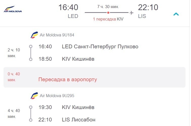 Еще в Лиссабон есть рейсы через Кишенев.