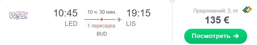 Через 7,5 часов вы окажетесь в столице Португалии. Если говорить о моем опыте, то я летела в Лиссабон через Будапешт, вот нашла похожий рейс. На дорогу потратила 10,5 часов.