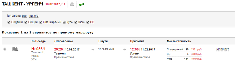 Поездка на поезде занимает столько же времени, как и на машине, но здесь вам просто не придется сидеть за рулем. От железнодорожного вокзала Ташкента рейсы в Ургенч есть ежедневно, но не больше одного.