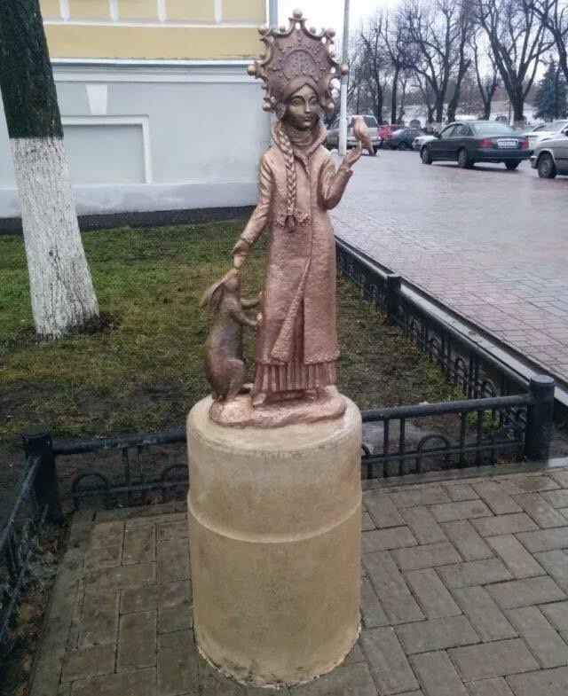 Тоже развлечения для детворы и туристов, но поставлена с благой целью - в копилку собирают для животных из приюта. Бронзовая скульптура снегурочки рядом со зданием администрации.