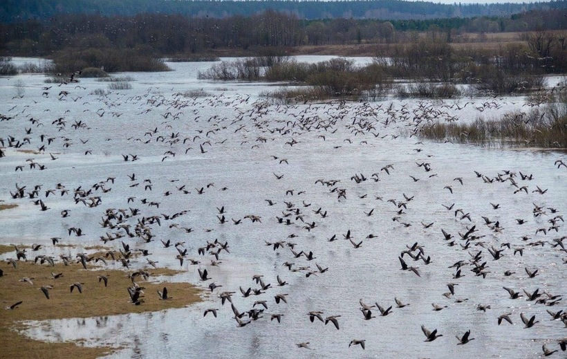 Кологривская пойма – гусиный природный заказник. Это костромской район. Кологрив — единственное в России место, где в черте города около месяца можно вживую наблюдать сразу за несколькими видами гусей. Наибольшая природоохранная ценность заказника в том, что во время весеннего перелета на его территории останавливаются стаи диких гусей и близкого к гусям рода казарок. Одновременно здесь могут находиться до 8000 перелетных птиц. Перелетные гуси находятся на территории заказника с конца апреля до начала июня